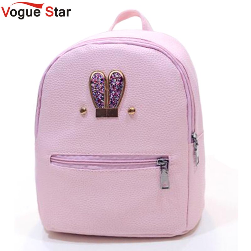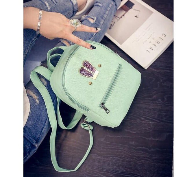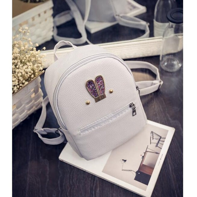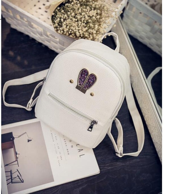 Fashion 2018 New backpack PU leather Women bag Sweet girl mini shoulder bag Cute rabbit ear Sequins rivet small backpack LS536