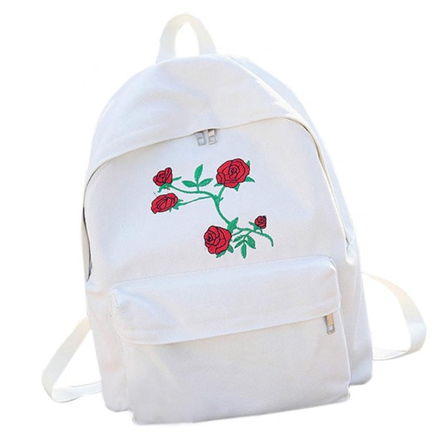 TRANSER Women Fashion Zipper High Quality Women Girls Embroidery Rose School Bag Girls Travel Laptop Backpack School Bag Aug21